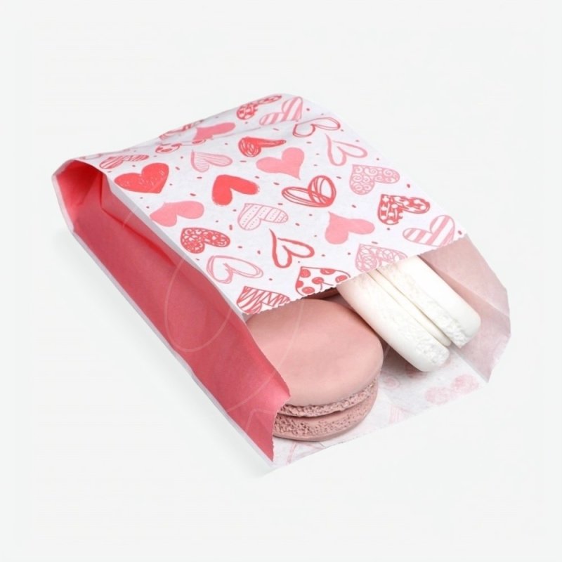 Пакет бумажный для сладостей "Сердечки" 17х10х6,5 см