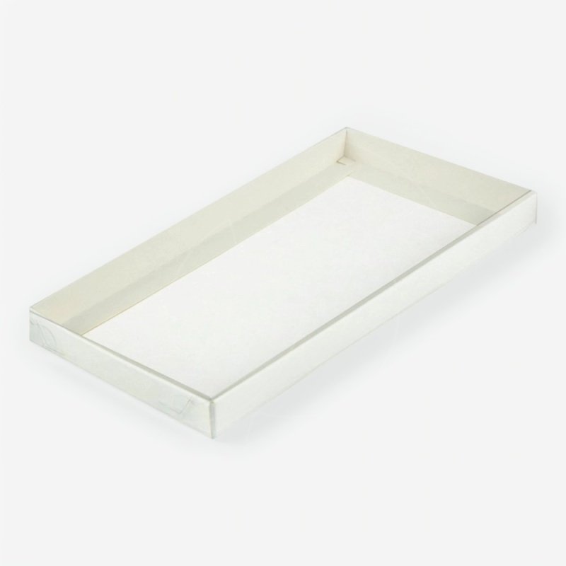 Коробка для шоколадной плитки с пластиковой крышкой Белая 16х8х1,7 см