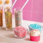 Декор на основе сахара и рисовой муки, подчеркивающий принадлежность десерта к определенному празднику, событию или идее при минимуме трудозатрат на процесс декорирования. Используются на сливочном, масляном, творожном, белковом креме, кондитерских глазурях, желейных и мармеладных массах, на шоколаде и мастике. Фигурные посыпки подходят для декора верхней и боковой поверхности десерта, их можно добавлять внутрь изделия (например, в леденцы). Специальная глазировка не дает цвету посыпок мигрировать на декорируемую поверхность.