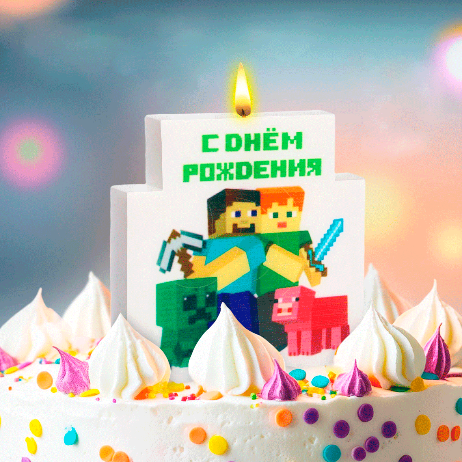 Свеча декоративная "С Днём Рождения!" 7,7х8,9 см