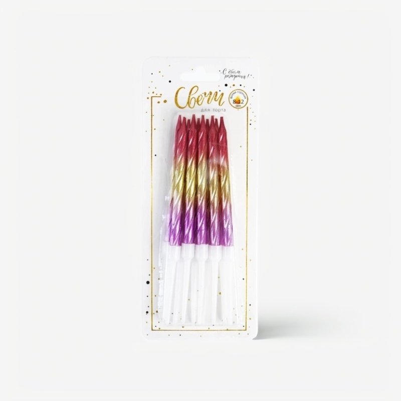 Свеча расположена на тонком основании, которое удобно крепить на праздничном торте и легко вынимать.