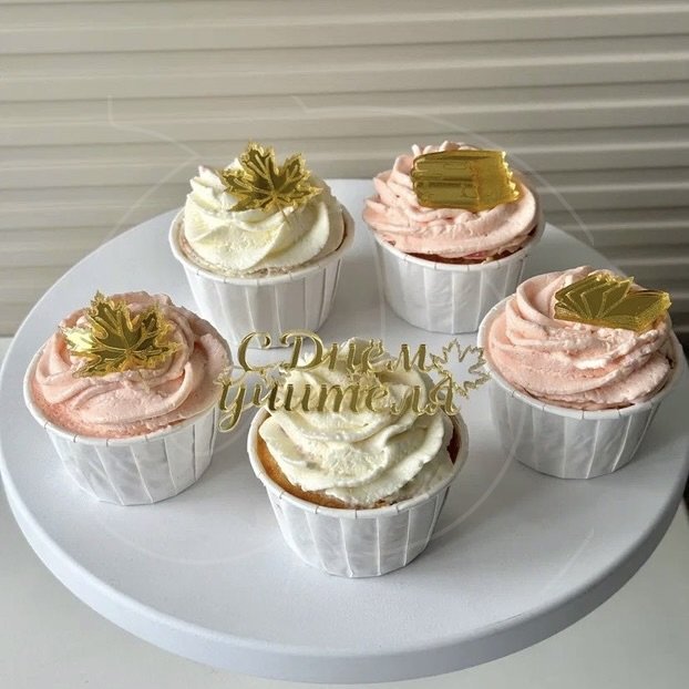 Доставка Набор топперов декоративных акриловых "С Днём Учителя" Золото 6 шт из магазина в вашем городе: