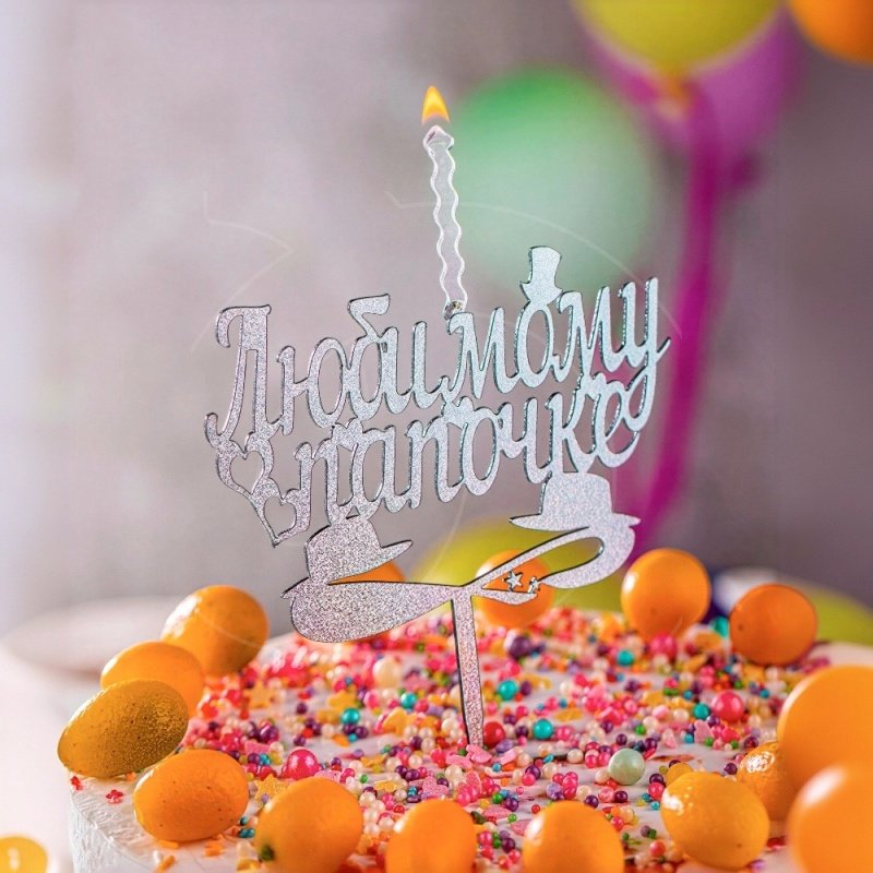 Доставка Свеча-топпер декоративная акриловая "Любимому папочке" Серебро из магазина в вашем городе: