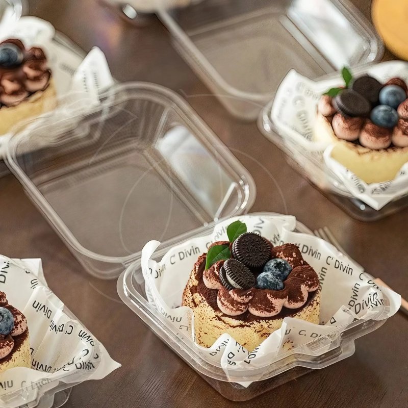 Поместите десерт в упаковку и закройте крышку.