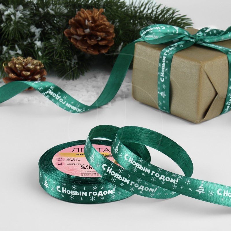 Доставка Лента для декора и упаковки "Новый год" Зелёная 1,5 см из магазина в вашем городе:
